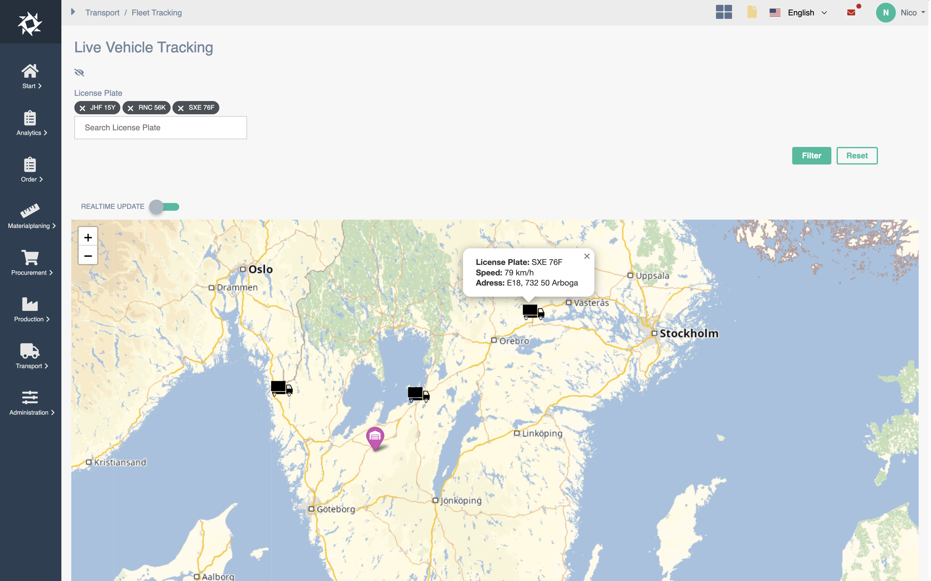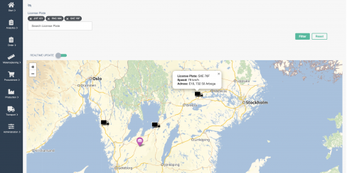 Mercedes, Volvo, and Scania APIs – for live tracking trucks. ERP integrations like Monitor G5, Microsoft Office 365, Fortnox, Garp, and Visma